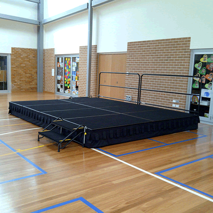 Available in single or dual height stage options with a range of steps, drapes, and guardrails to suit your individual set-up requirements. If you are unsure of the size you need or how many units Speak to our friendly team today and we will put a package together which suits your needs.